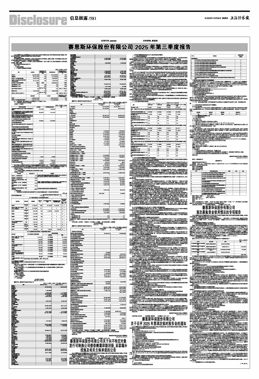 赛恩斯环保股份有限公司 2025年第三季度报告