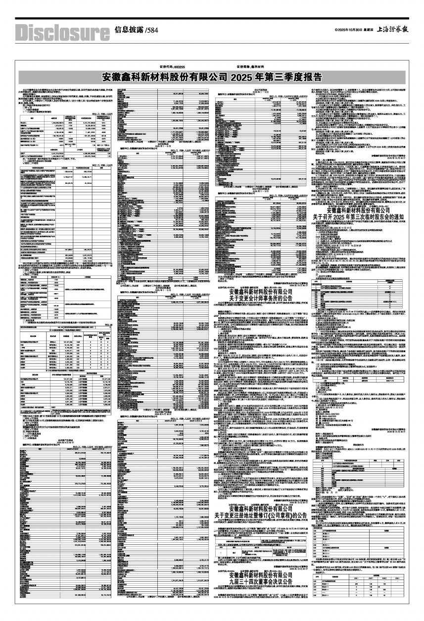 安徽鑫科新材料股份有限公司 2025年第三季度报告