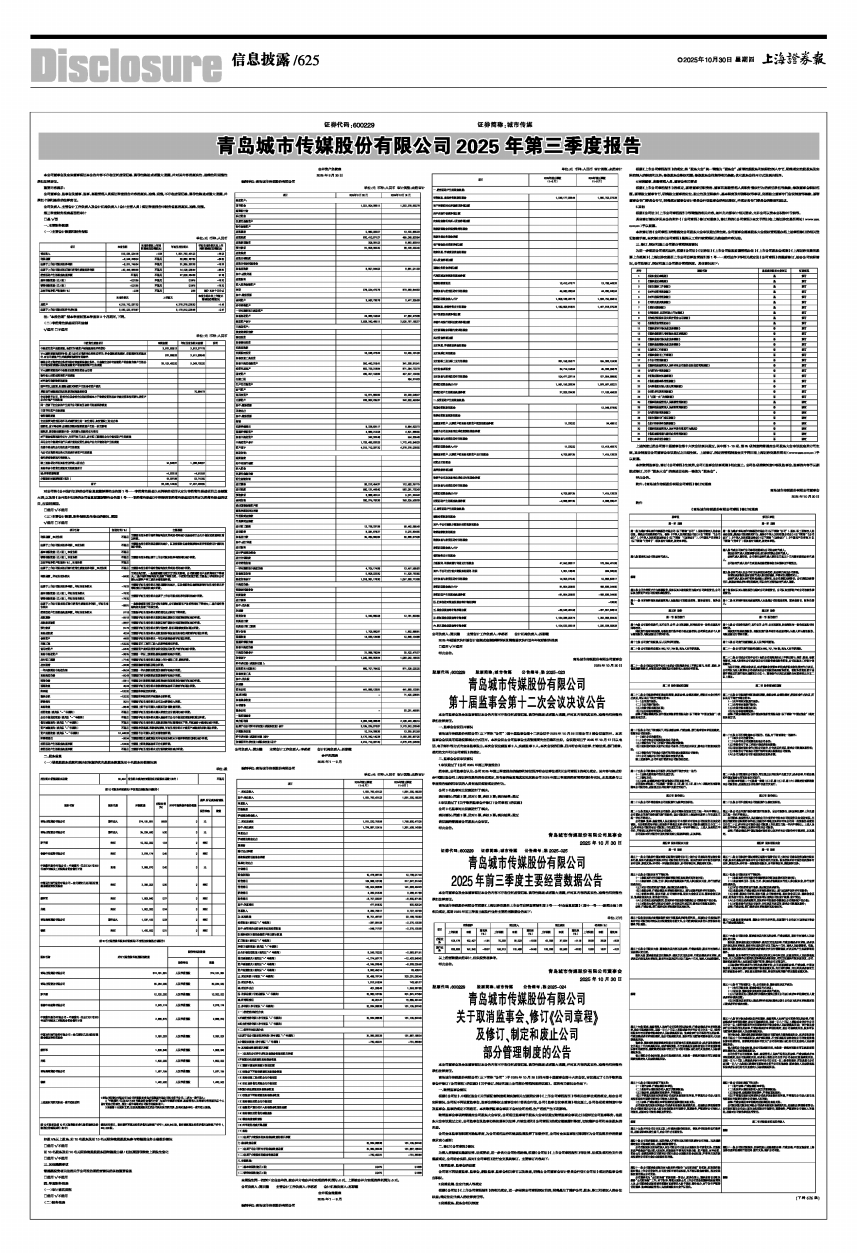 青岛城市传媒股份有限公司2025年第三季度报告