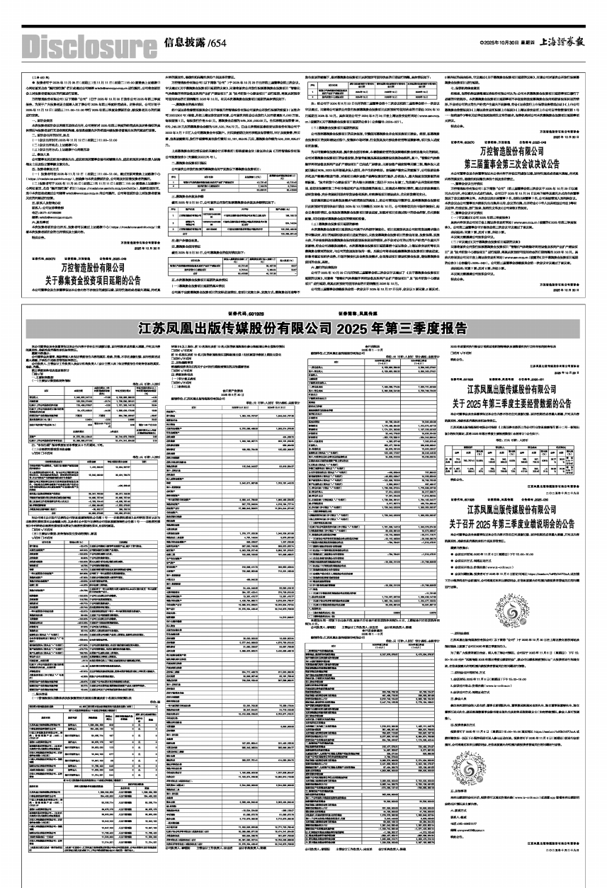 江苏凤凰出版传媒股份有限公司(以下简称“公司”)于2025年10月30日在上海证券交易所网站及指定媒体上披露了公司《2025年第三季度报告》。