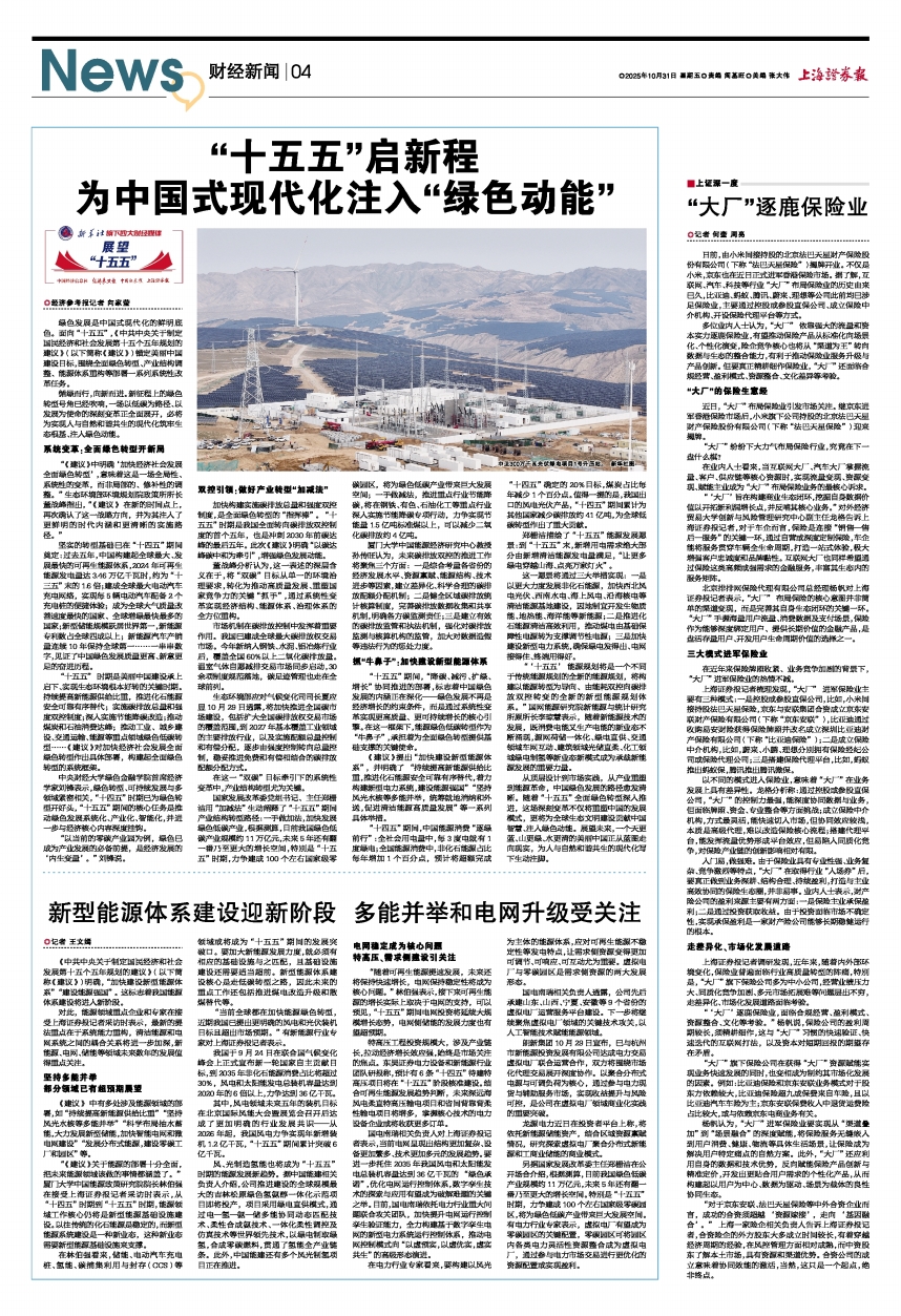 《建议》中有多处涉及能源领域的部署,如“持续提高新能源供给比重”“坚持风光水核等多能并举”“科学布局抽水蓄能,大力发展新型储能,加快智能电网和微电网建设”“发展分布式能源,建设零碳工厂和园区”等。