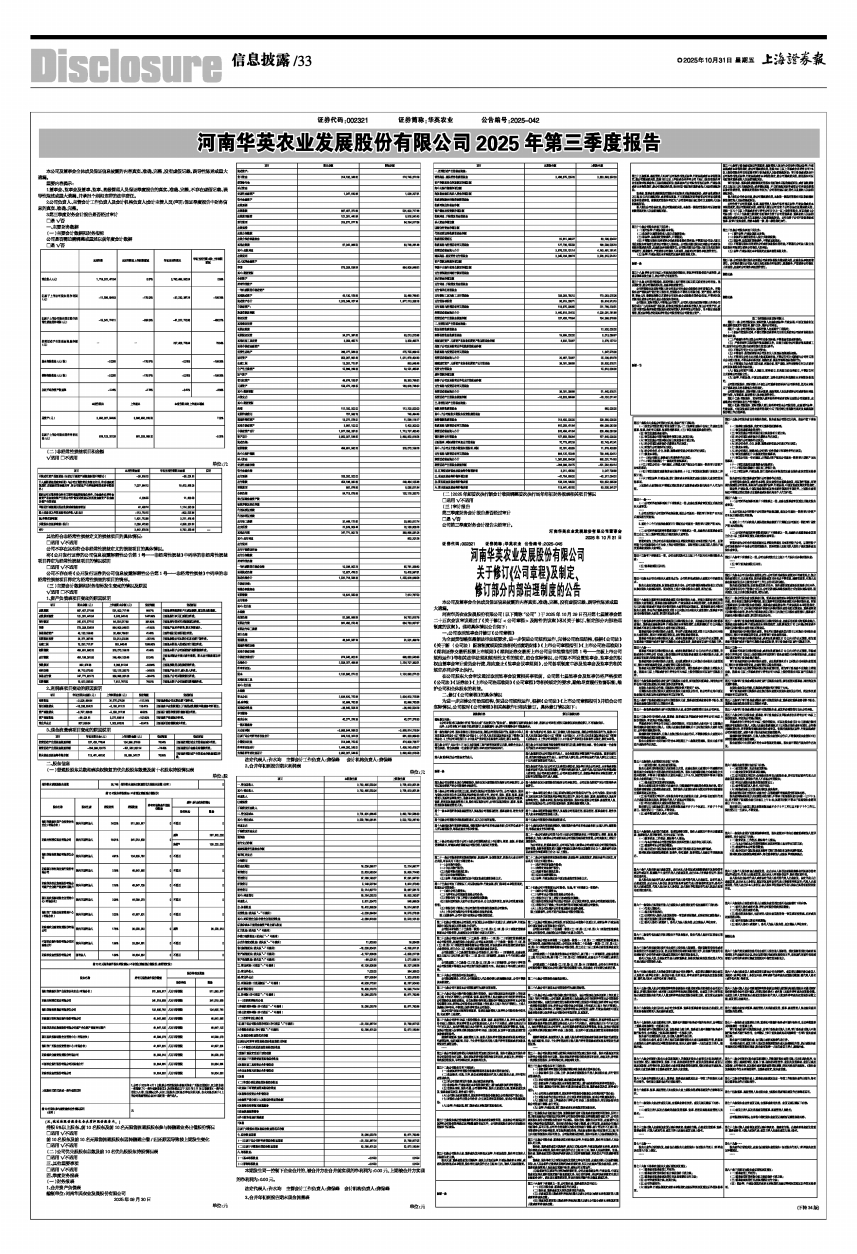 河南华英农业发展股份有限公司(以下简称“公司”)于2025年10月29日召开第七届董事会第二十五次会议审议通过了《关于修订<公司章程>及附件的议案》和《关于修订、制定部分内部治理制度的议案》。现将具体情况公告如下: