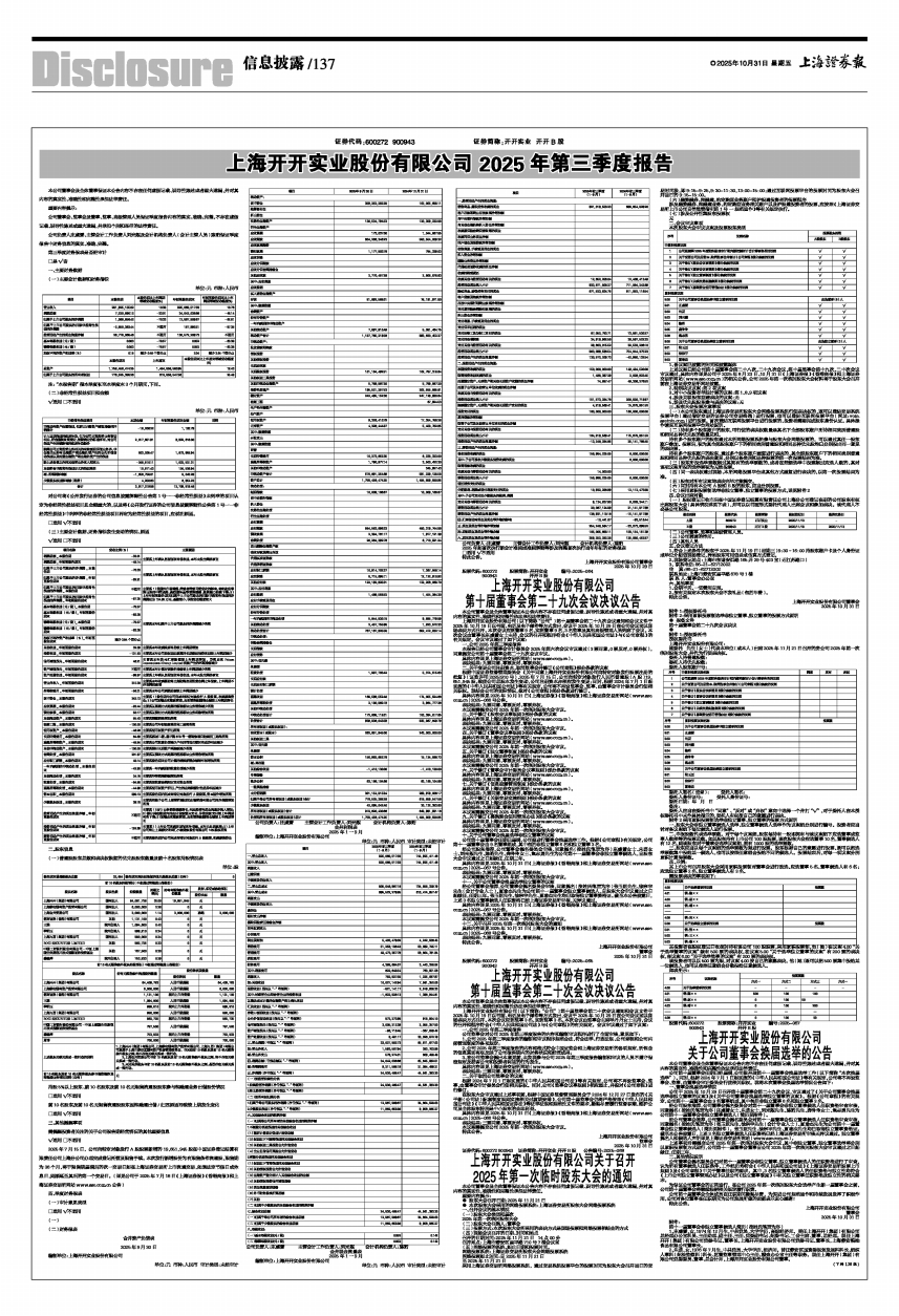 上海开开实业股份有限公司 2025年第三季度报告