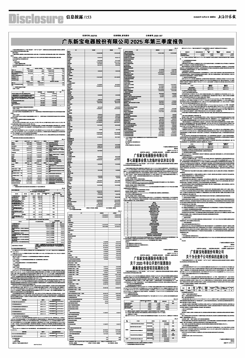 广东新宝电器股份有限公司2025年第三季度报告