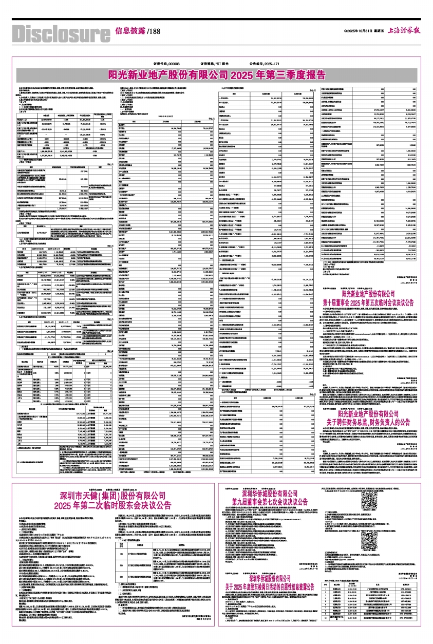 阳光新业地产股份有限公司2025年第三季度报告