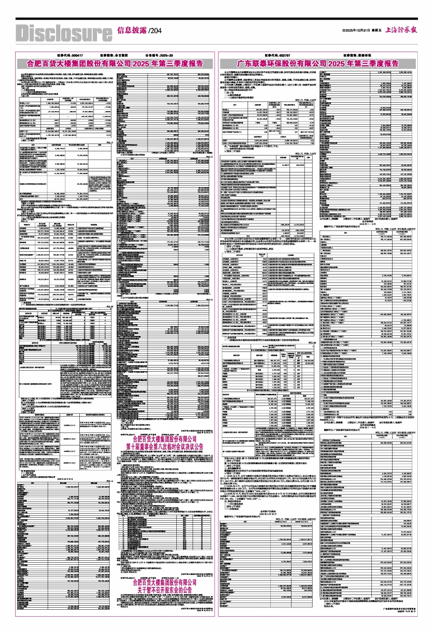 合肥百货大楼集团股份有限公司2025年第三季度报告