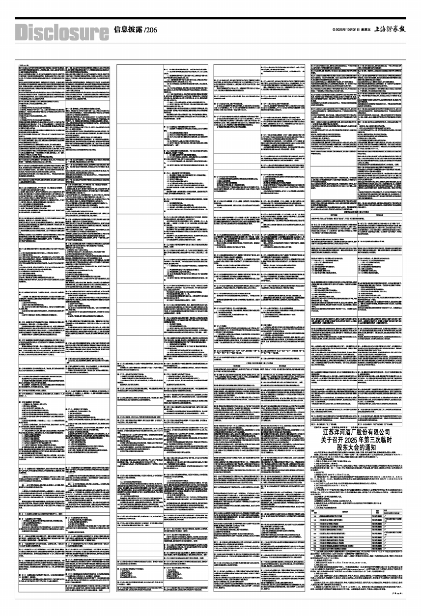 根据江苏洋河酒厂股份有限公司(以下简称“公司”)第八届董事会第十五次会议决议,公司决定于2025年11月26日(星期三)15:00召开2025年第三次临时股东大会,现将有关事项通知如下: