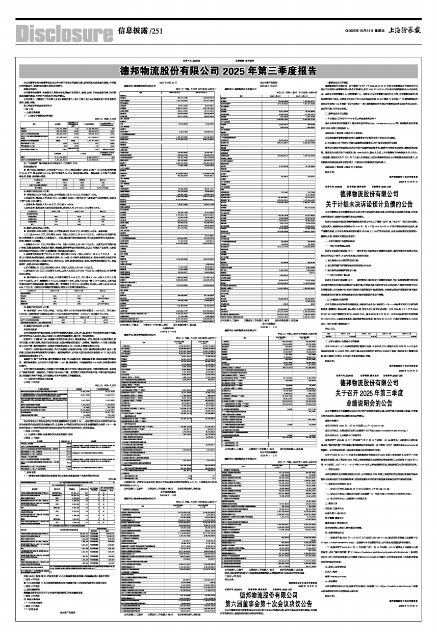具体内容详见同日披露于上海证券交易所网站(http://www.sse.com.cn/)的《德邦物流股份有限公司2025年第三季度报告》。