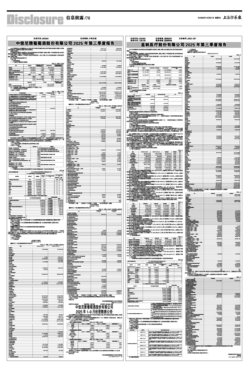 中信尼雅葡萄酒股份有限公司2025年第三季度报告