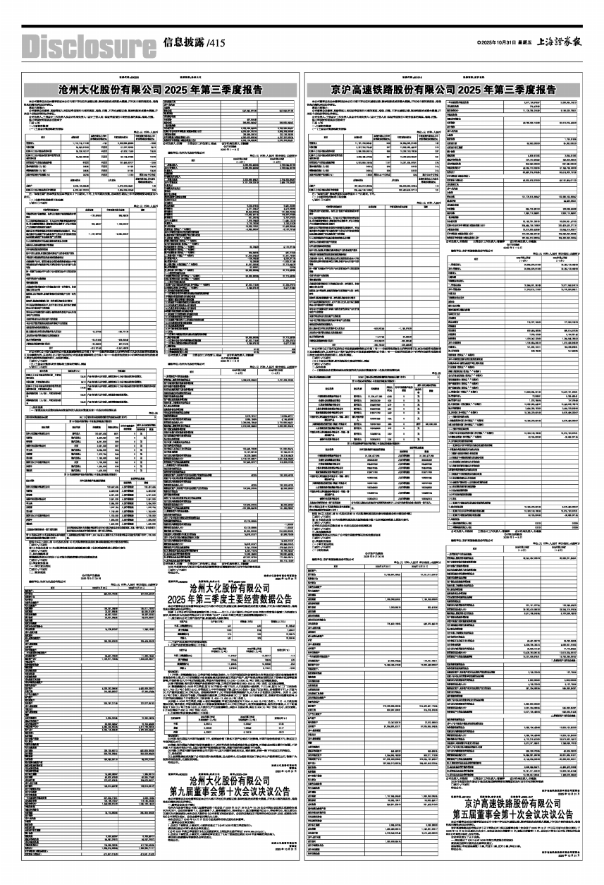 根据《上市公司行业信息披露指引第十三号一一化工》、《关于做好上市公司2025年第三季度报告披露工作的通知》要求,现将沧州大化股份有限公司(以下简称“公司”)2025年第三季度主要经营数据披露如下: