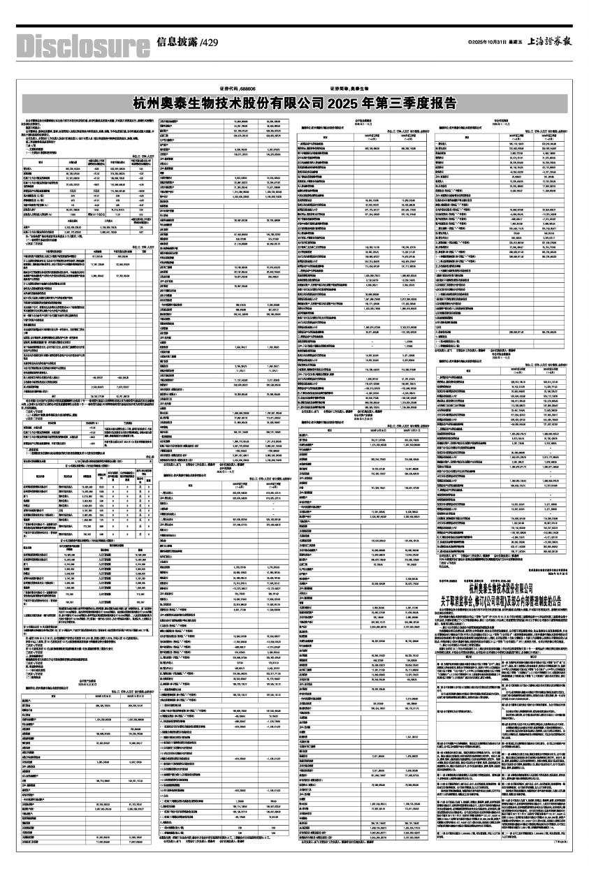 杭州奥泰生物技术股份有限公司2025年第三季度报告