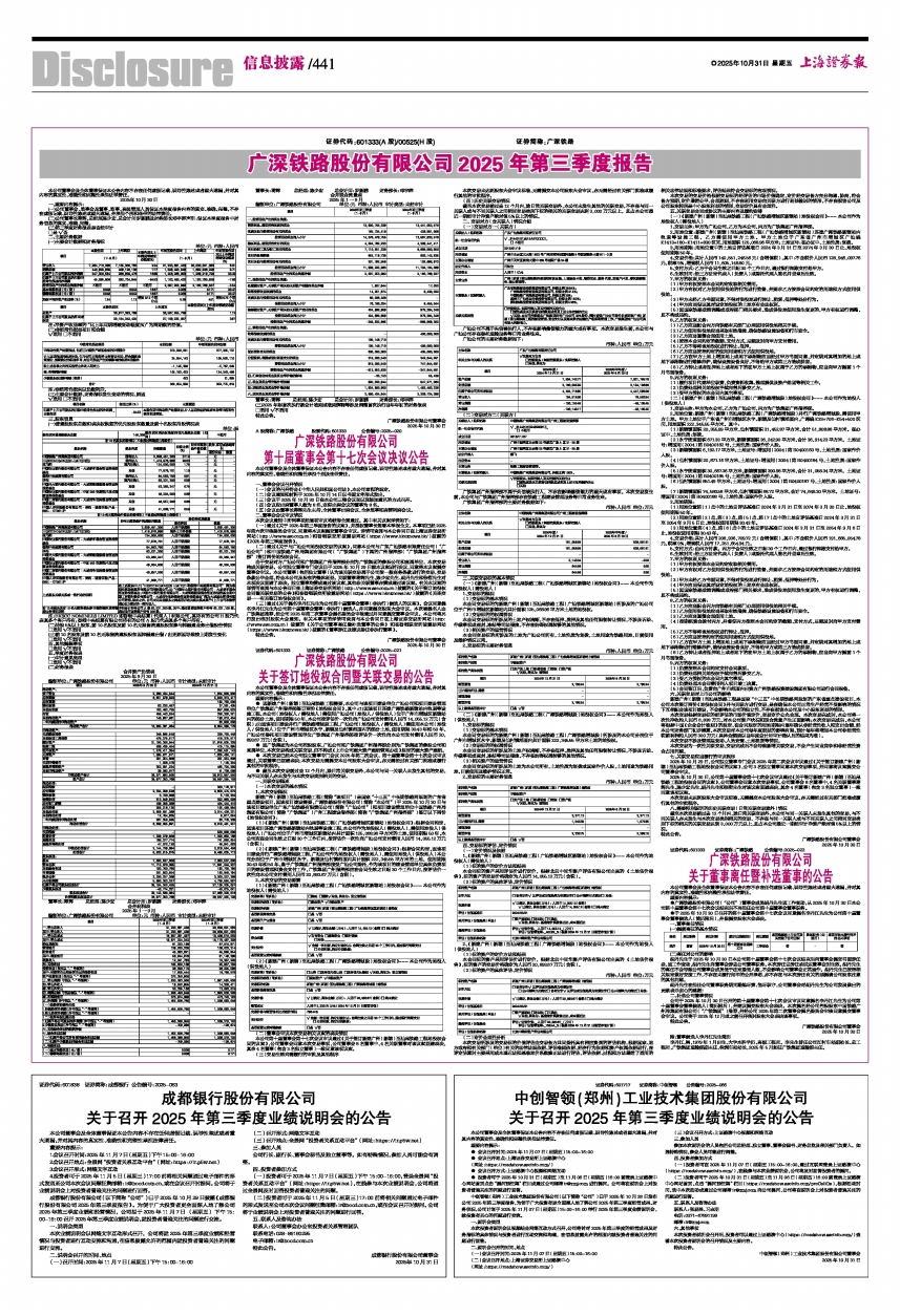 广深铁路股份有限公司2025年第三季度报告