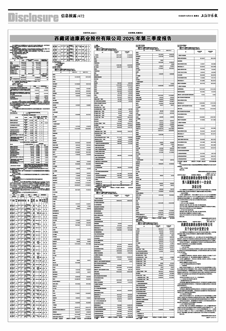 西藏诺迪康药业股份有限公司 2025年第三季度报告