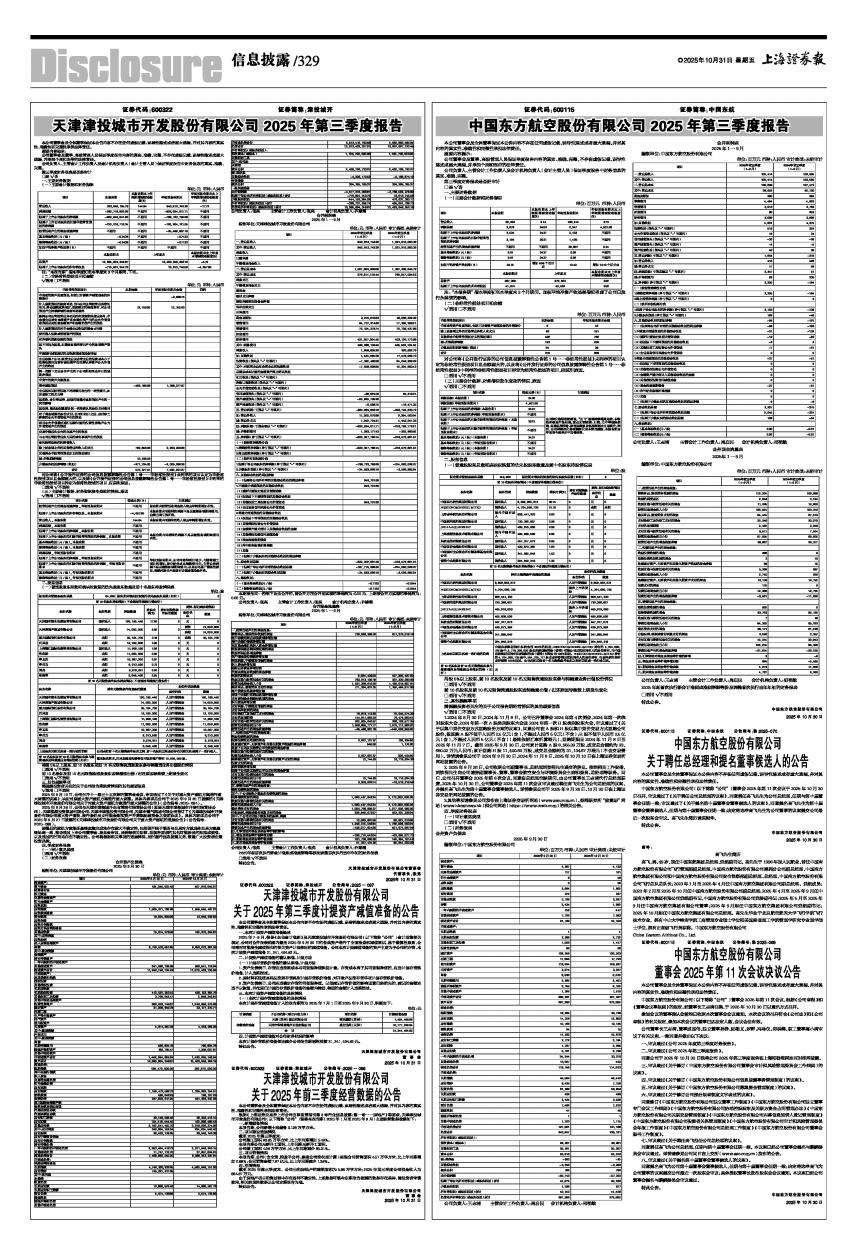 中国东方航空股份有限公司 2025年第三季度报告