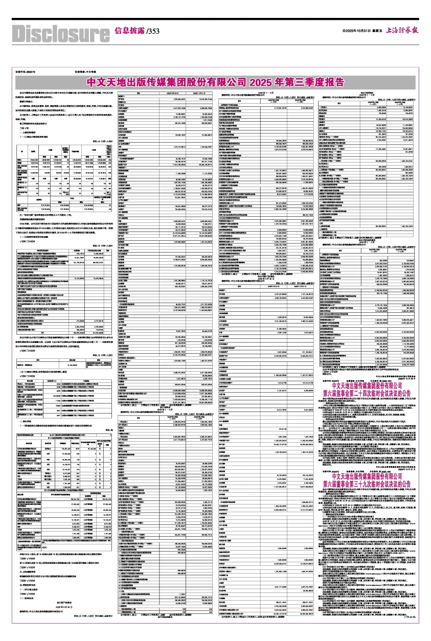 中文天地出版传媒集团股份有限公司 2025年第三季度报告