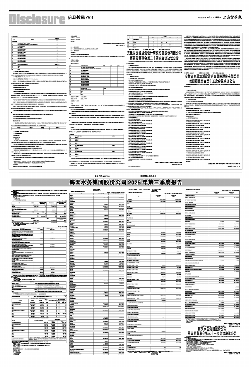 安徽省交通规划设计研究总院股份有限公司(以下简称“公司”)第四届董事会第二十四次会议于2025年10月30日以现场结合通讯表决方式召开,会议通知于2025年10月20日以邮件方式发出,会议补充通知于2025年10月27日以邮件方式发出。董事长苏新国主持会议。会议应出席董事6人,实际出席董事6人,其中独立董事纪敏、独立董事陈艾荣以通讯方式出席。本次董事会会议的召开及程序符合《中华人民共和国公司法》和《公司章程》的相关规定,所作决议合法有效。公司监事、部分高级管理人员及相关部门负责人列席了本次会议。