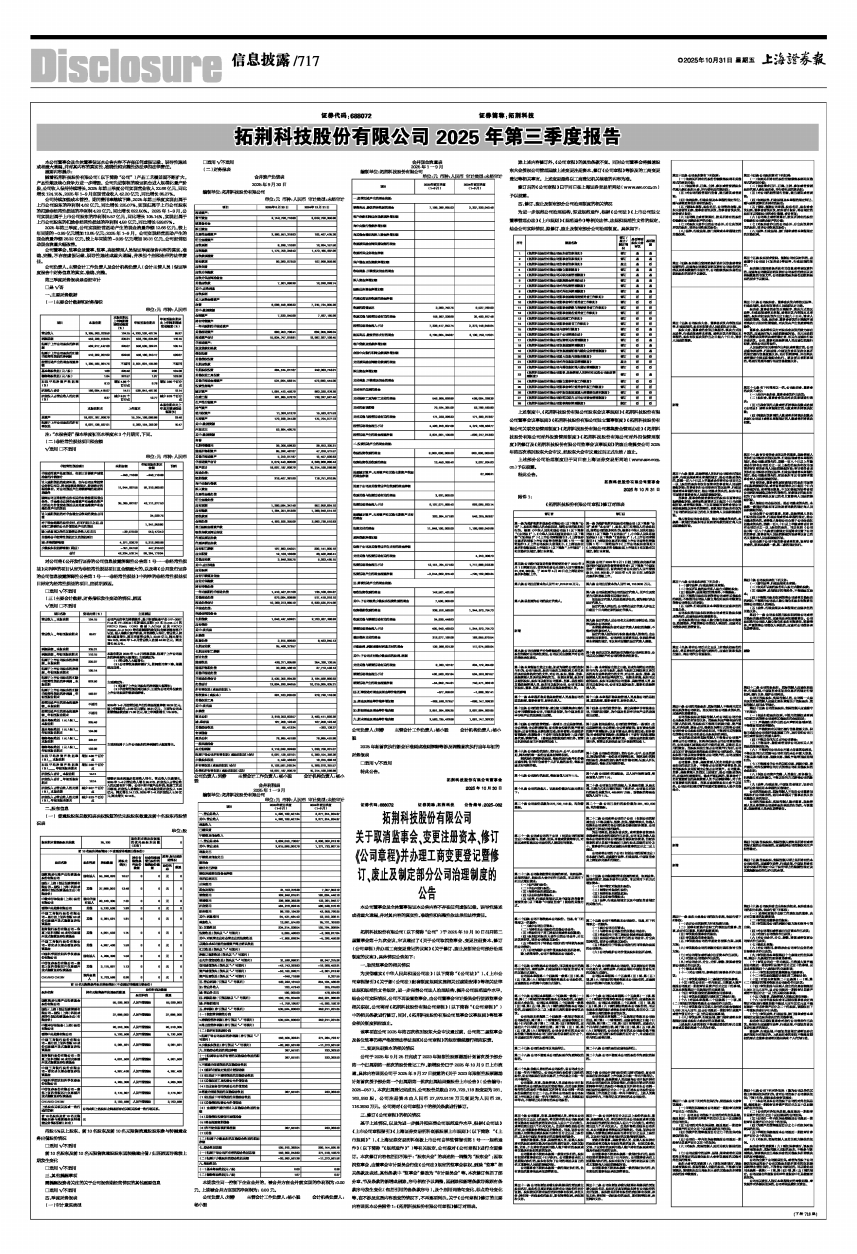 拓荆科技股份有限公司(以下简称“公司”)于2025年10月30日召开第二届董事会第十九次会议,审议通过了《关于公司取消监事会、变更注册资本、修订〈公司章程〉并办理工商变更登记的议案》《关于修订、废止及制定公司部分治理制度的议案》,具体情况公告如下: