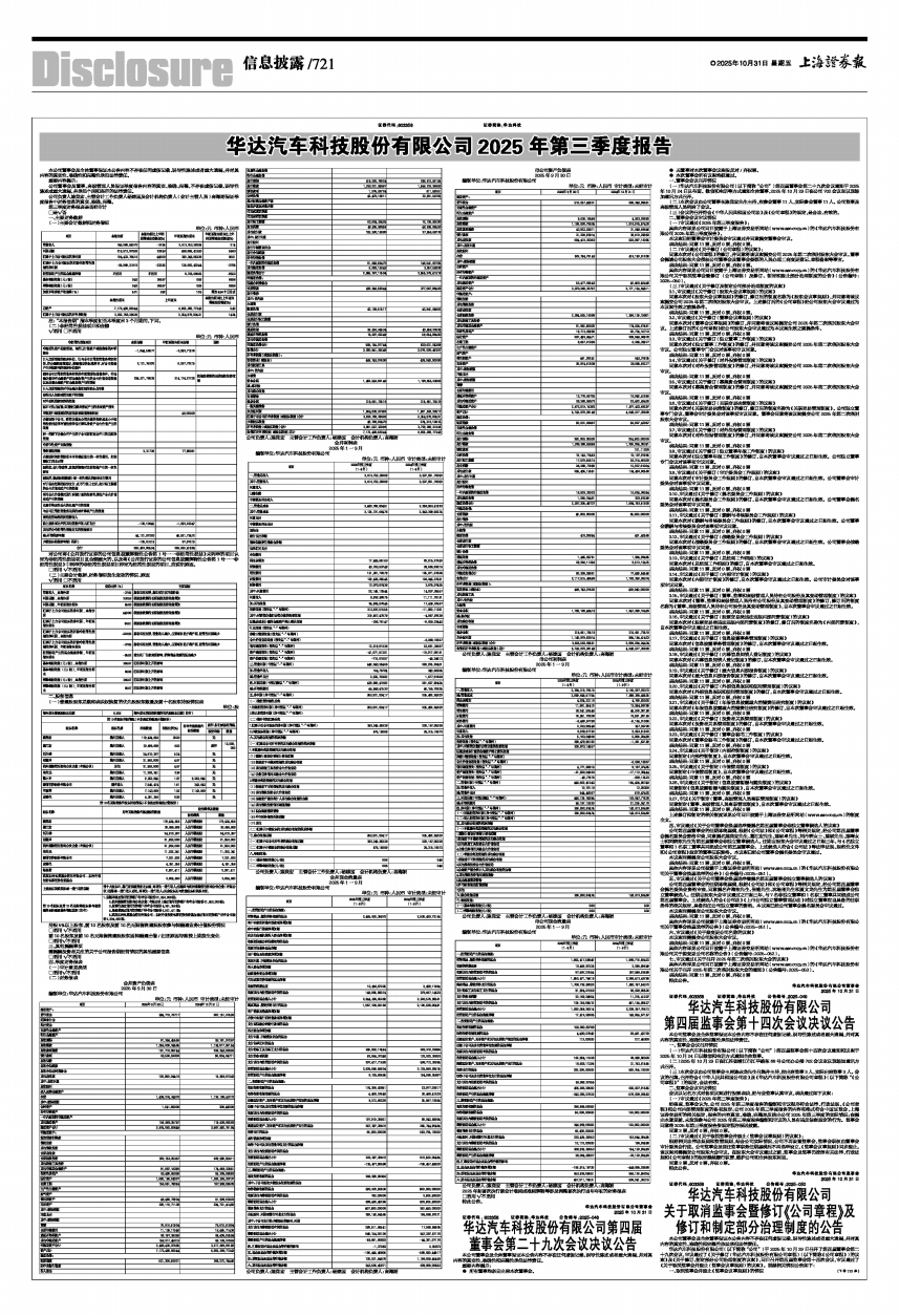 具体内容详见公司同日披露于上海证券交易所网站(www.sse.com.cn)的《华达汽车科技股份有限公司2025年第三季度报告》。