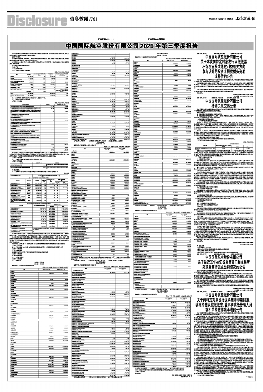 中国国际航空股份有限公司(以下简称“公司”)于2025年10月30日召开公司第七届董事会第九次会议,审议通过了关于公司2025年度向特定对象发行A股股票事项的相关议案。现就公司2025年度向特定对象发行A股股票不存在直接或通过利益相关方向认购方提供财务资助或补偿事宜承诺如下: