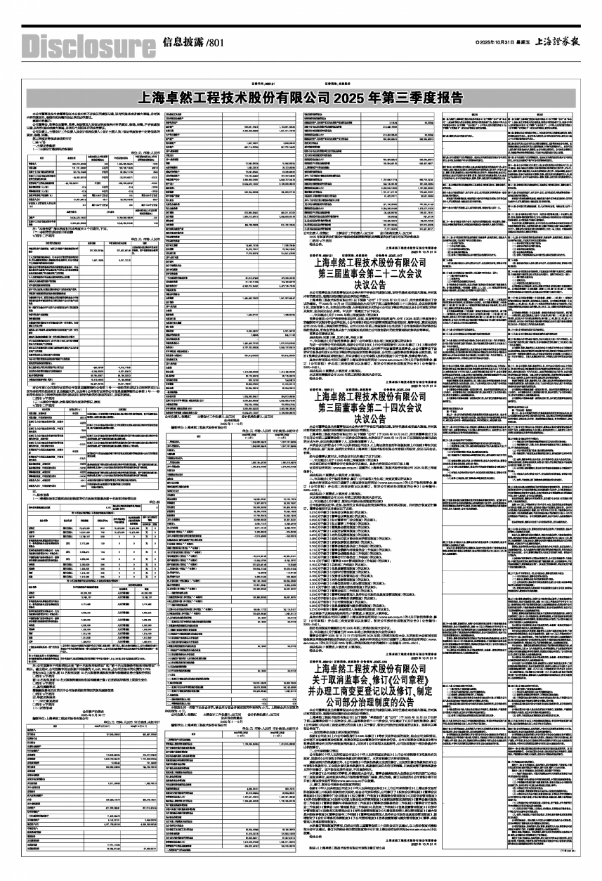 证券交易所网站(www.sse.com.cn)披露的《上海卓然工程技术股份有限公司2025 年第三季度报告》。