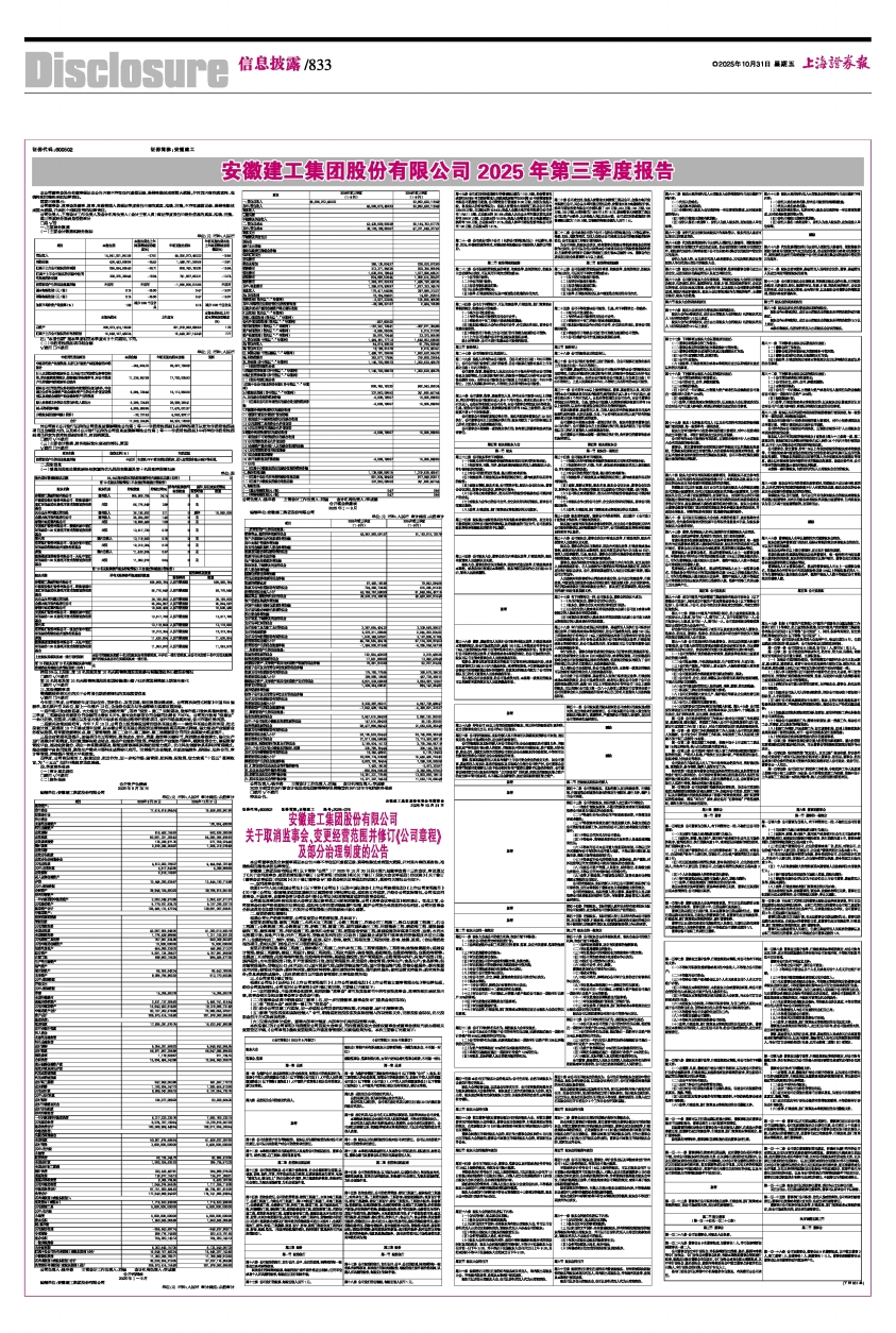 安徽建工集团股份有限公司 2025年第三季度报告