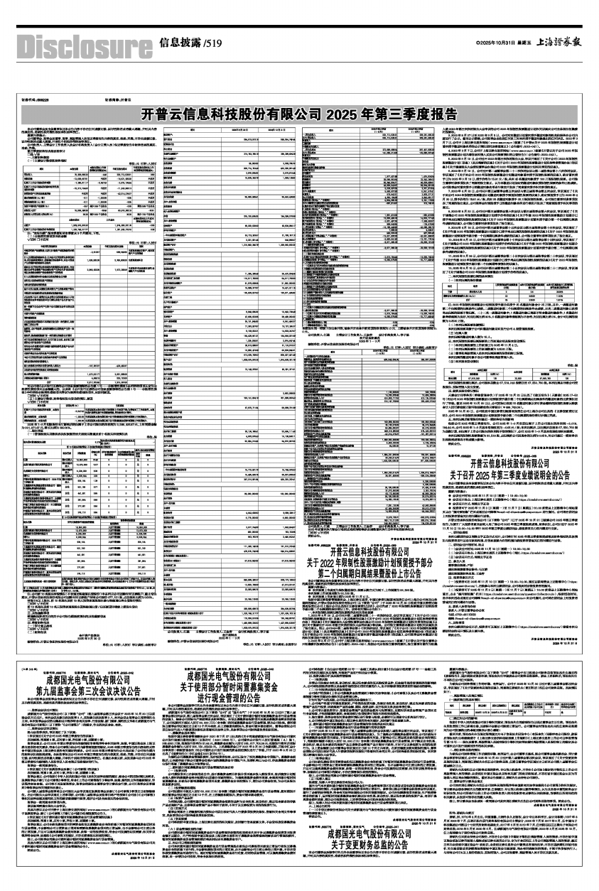 开普云信息科技股份有限公司(以下简称“公司”)已于2025年10月31日披露公司2025年第三季度报告,为便于广大投资者更全面深入地了解公司2025年第三季度经营成果、财务状况,公司计划于2025年11月10日13:30-14:30举行2025年第三季度业绩说明会,就投资者关心的问题进行交流。