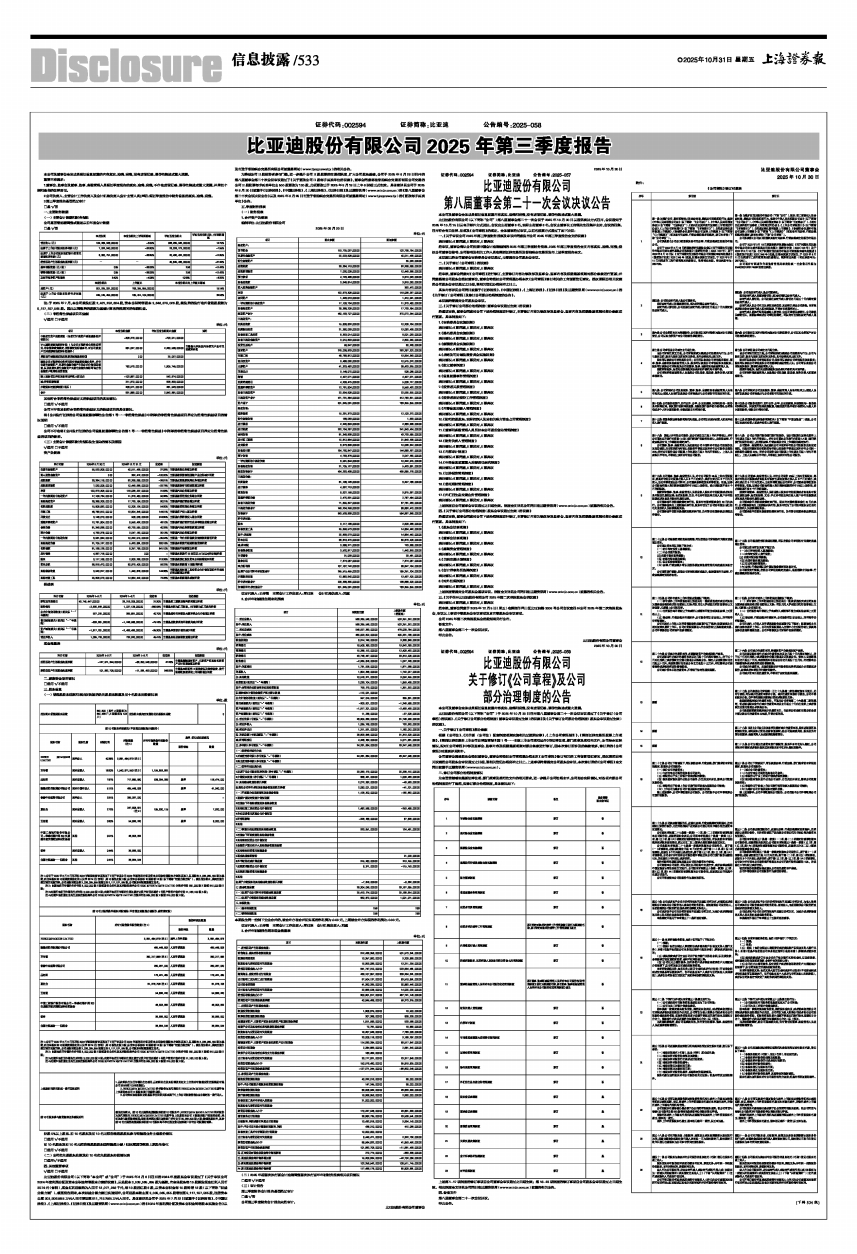 比亚迪股份有限公司2025年第三季度报告