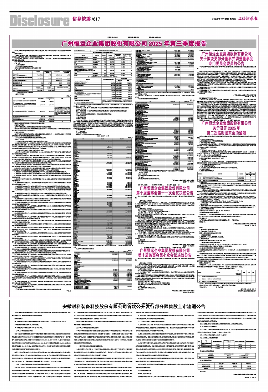 详情请见公司同日披露的《广州恒运企业集团股份有限公司2025年第三季度报告》。