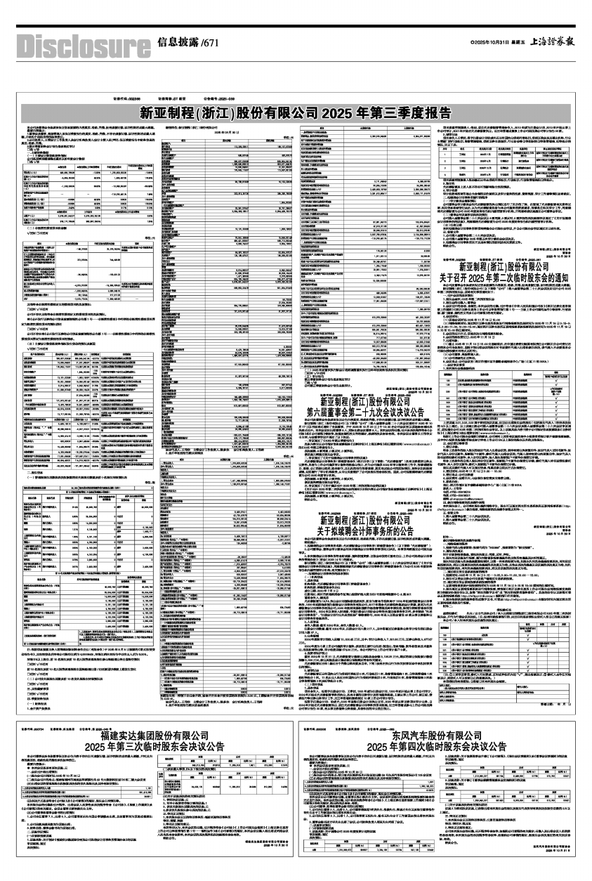 新亚制程(浙江)股份有限公司2025年第三季度报告