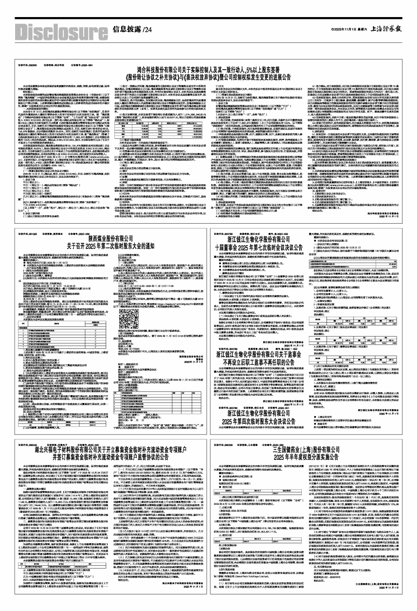 上述议案于2025年10月30日刊载于上海证券交易所网站、中国证券报、上海证券报、证券时报、证券日报。