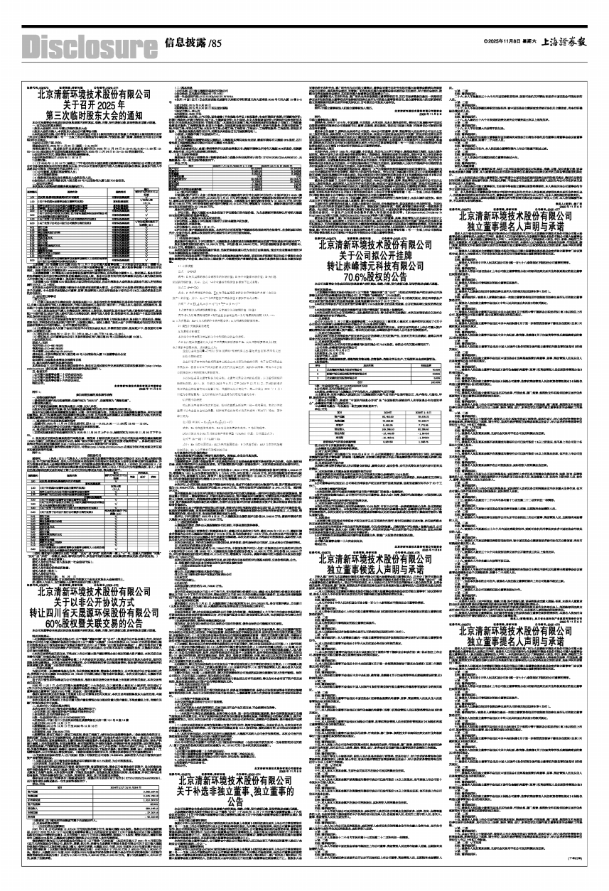 证券代码:002573 证券简称:清新环境 公告编号:2025-071