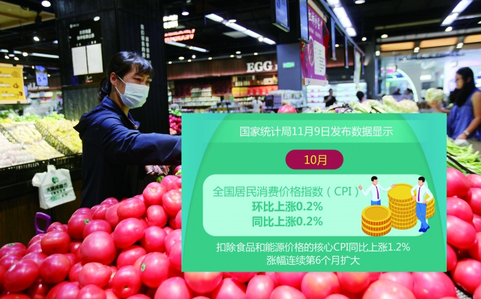 国家统计局11月9日发布的最新数据显示:10月,CPI同比由降转涨,同比上涨0.2%,环比上涨0.2%;PPI同比涨幅继续收窄,环比年内首次上涨。扣除食品和能源价格的核心CPI同比上涨1.2%,涨幅升至2024年3月以来最高。