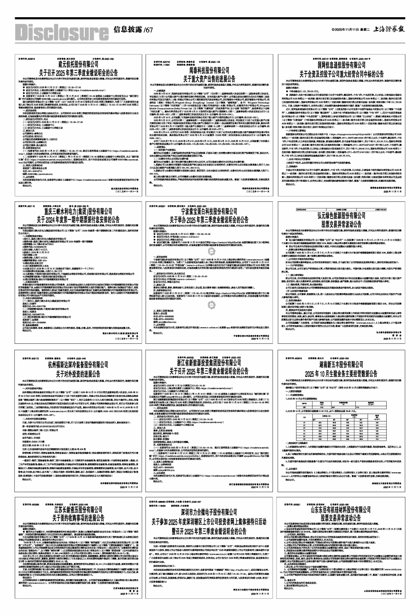 暨召开2025年第三季度业绩说明会的公告 -