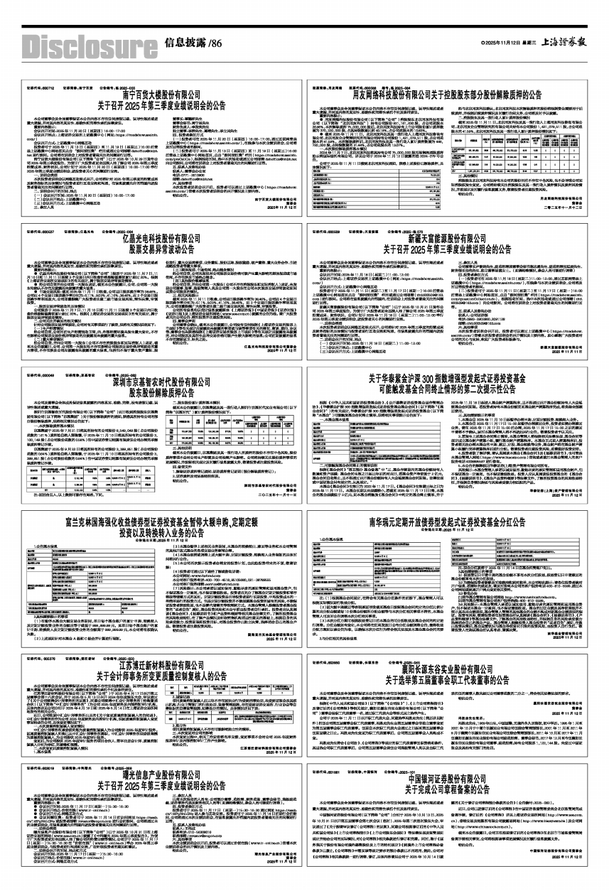 关于召开2025年第三季度业绩说明会的公告 -