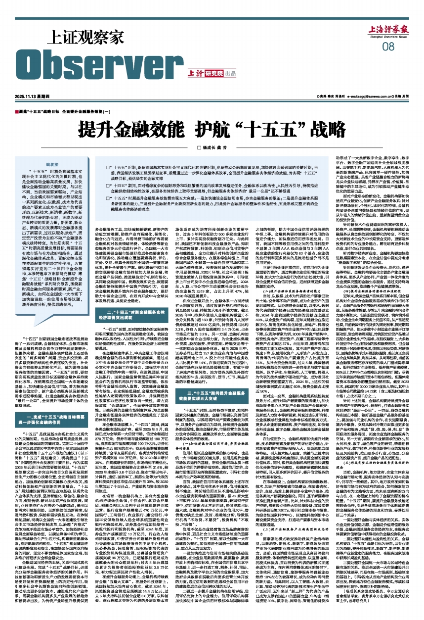 ■聚焦“十五五”战略目标 全面提升金融服务效能(一)