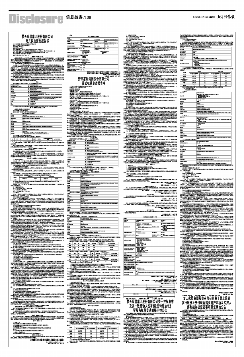 2025年11月17日,梦天控股、梦家投资、余静渊、范小珍与嘉兴汇芯、曹勇签订《股份转让协议》,梦天控股、梦家投资拟通过协议转让方式分别向嘉兴汇芯转让其持有的上市公司股份11,134,500股(占上市公司总股本的5.00%)、4,150,000股(占上市公司总股本的1.8636%)。