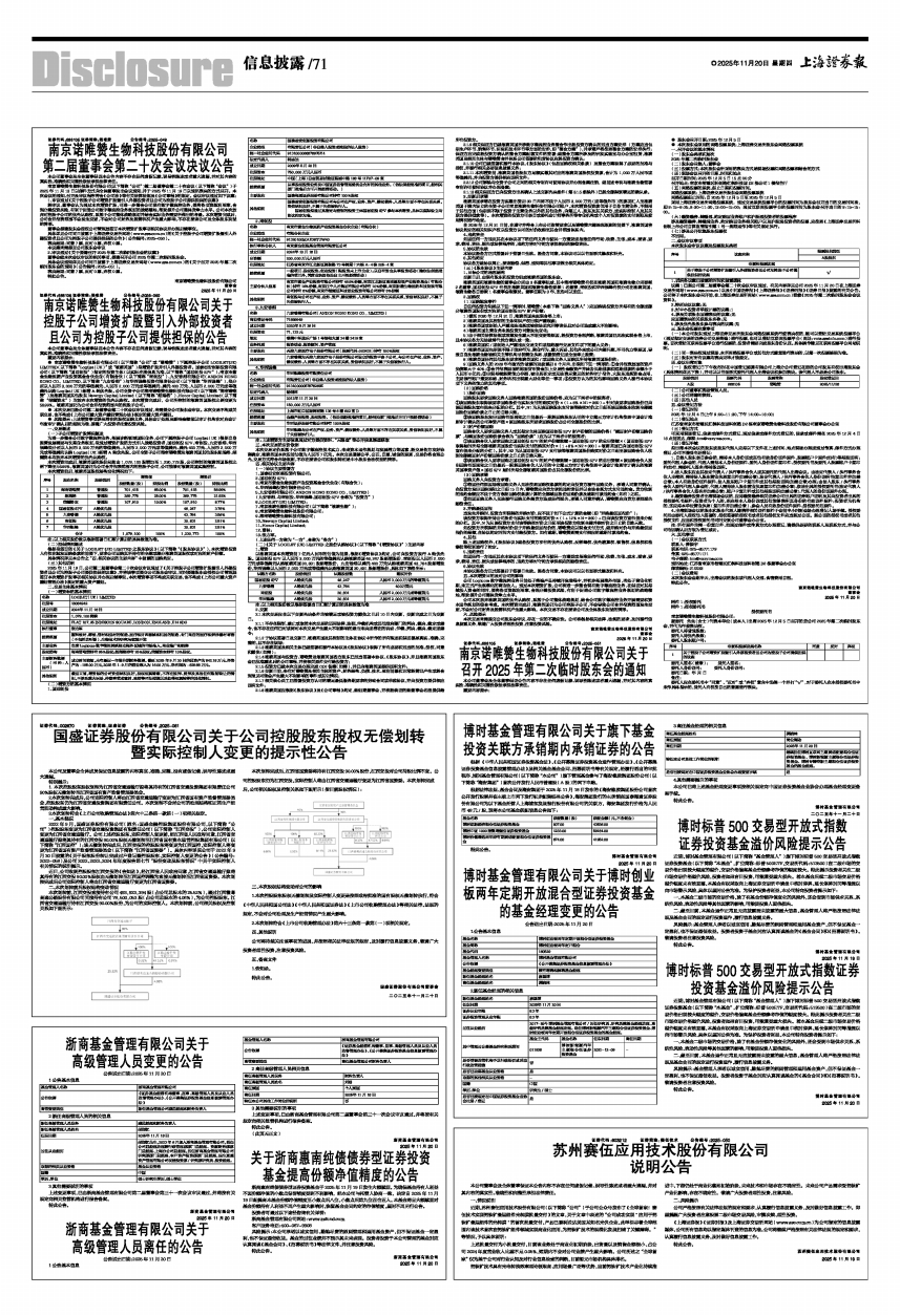 浙商惠南纯债债券型证券投资基金于2025年11月19日发生大额赎回。为确保基金持有人利益不因份额净值的小数点保留精度受到不利影响,经本公司与托管人协商一致,决定自2025年11月19日起提高本基金份额净值精度至小数点后八位,小数点后第九位四舍五入。本基金将自大额赎回对基金份额持有人利益不再产生重大影响时,恢复基金合同约定的净值精度,届时不再另行公告。