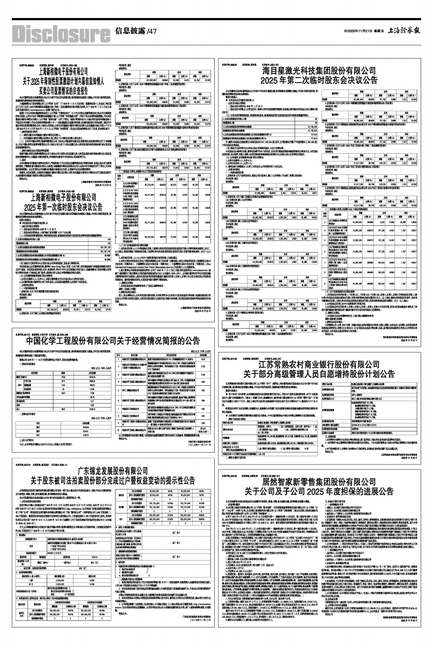 今日,公司接到新世纪公司函告并通过中国证券登记结算有限责任公司深圳分公司系统查询,上述被拍卖股份中的300万股股份已于2025年11月18日完成过户登记手续。