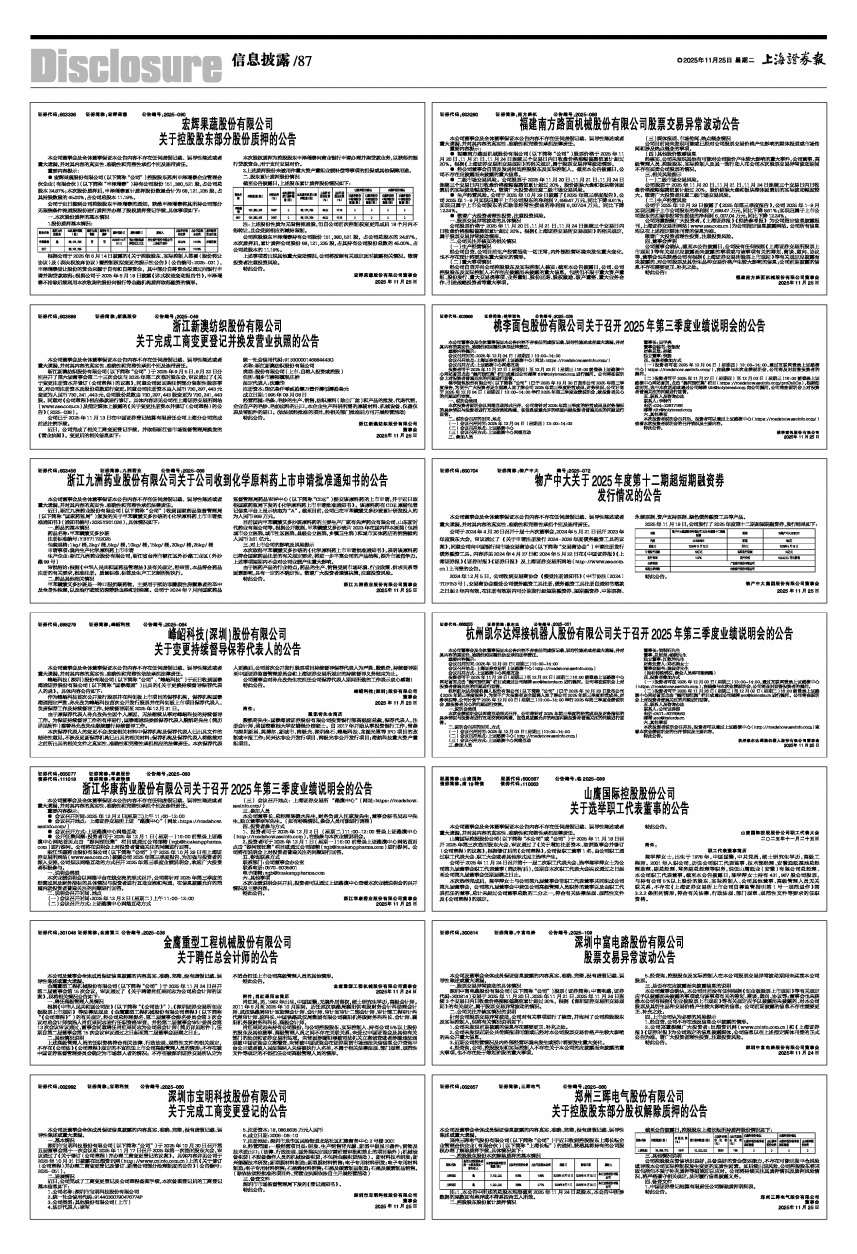 桃李面包股份有限公司关于召开2025年第三季度业绩说明会的公告
