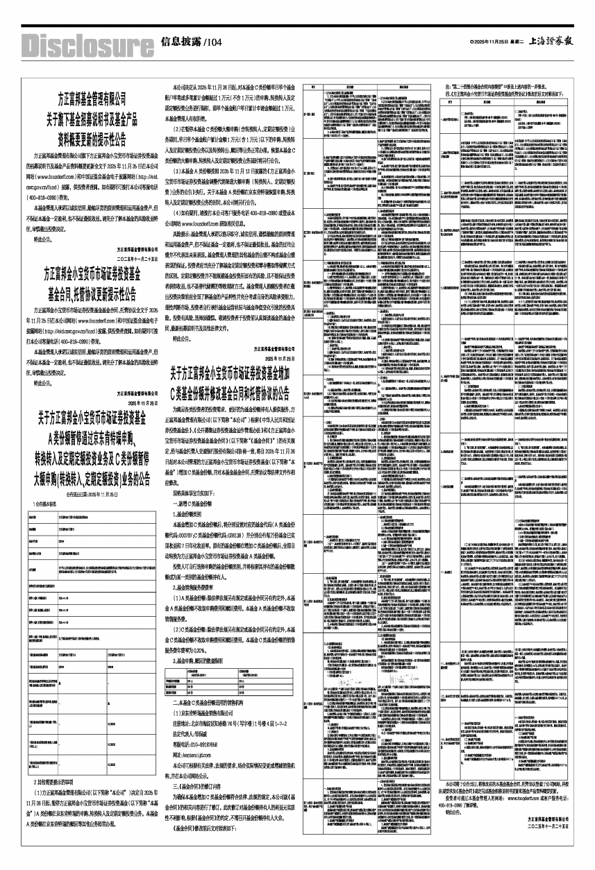 为满足各类投资者的投资需求,更好的为基金份额持有人提供服务,方正富邦基金管理有限公司(以下简称“本公司”)根据《中华人民共和国证券投资基金法》、《公开募集证券投资基金运作管理办法》和《方正富邦金小宝货币市场证券投资基金基金合同》(以下简称“《基金合同》”)的有关规定,经与基金托管人交通银行股份有限公司协商一致,将自2025年11月26日起对本公司管理的方正富邦金小宝货币市场证券投资基金(以下简称“本基金”)增加C类基金份额,并对本基金基金合同、托管协议等法律文件作相应修改。
