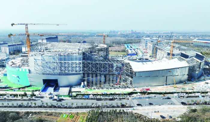 11月24日,在燃烧等离子体国际科学计划项目启动暨紧凑型聚变能实验装置BEST研究计划发布活动现场,来自十余个国家的聚变科学家共同签署《合肥聚变宣言》(小图)。大图为紧凑型聚变能实验装置(BEST)建设现场。 新华社图