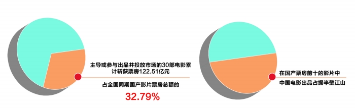 中国电影董秘、副总经理卜树升给出的一组数据,印证着其主业发展的强劲势头。今年前三季度,公司主导或参与出品并投放市场的30部电影,累计斩获票房122.51亿元,占全国同期国产影片票房总额的32.79%;在国产票房前十的影片中,公司出品占据半壁江山。