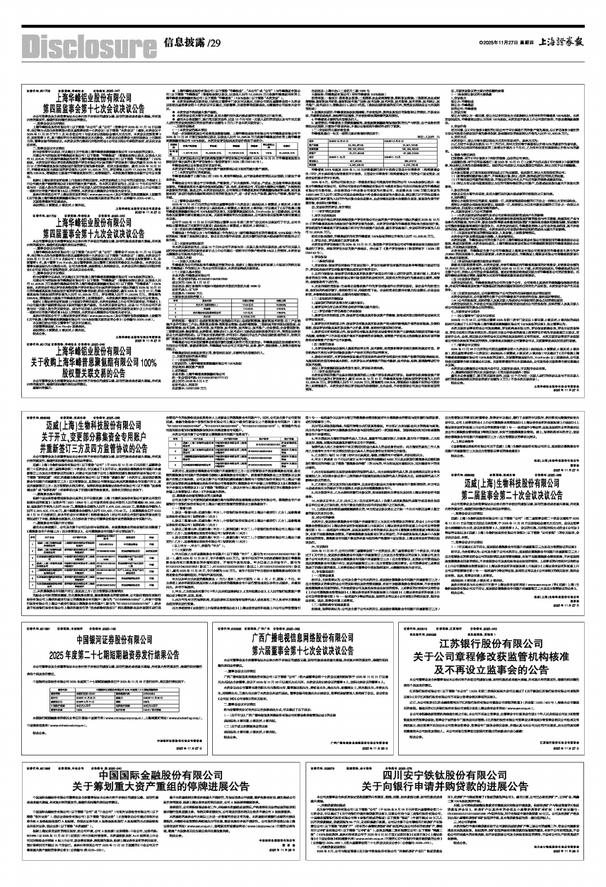 根据上海证券交易所的相关规定,经公司申请,公司A股股票(证券简称:中金公司,证券代码:601995)自2025年11月20日(星期四)开市时起开始停牌。本次重组涉及到A+H股两地上市公司同时吸收合并两家A股上市公司,涉及事项较多、流程较为复杂,根据上海证券交易所的相关规定,预计停牌时间不超过25个交易日。具体内容详见公司于2025年11月20日披露的《中金公司关于筹划重大资产重组的停牌公告》(公告编号:临2025-039)。