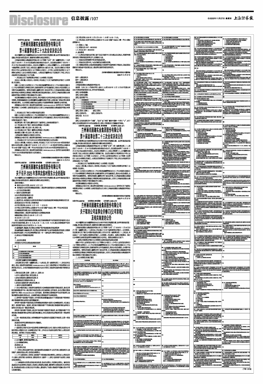 兰州丽尚国潮实业集团股份有限公司(以下简称“公司”)于2025年11月26日召开了第十届董事会第三十九次会议,审议通过了《关于取消监事会并修订<公司章程>的议案》和《关于修订公司部分制度的议案》。同日召开第十届监事会第二十三次会议,审议通过了《关于取消公司监事会并修订<公司章程>的议案》。取消公司监事会、修订《公司章程》及相关制度事宜尚需提交股东大会审议。现将具体情况公告如下: