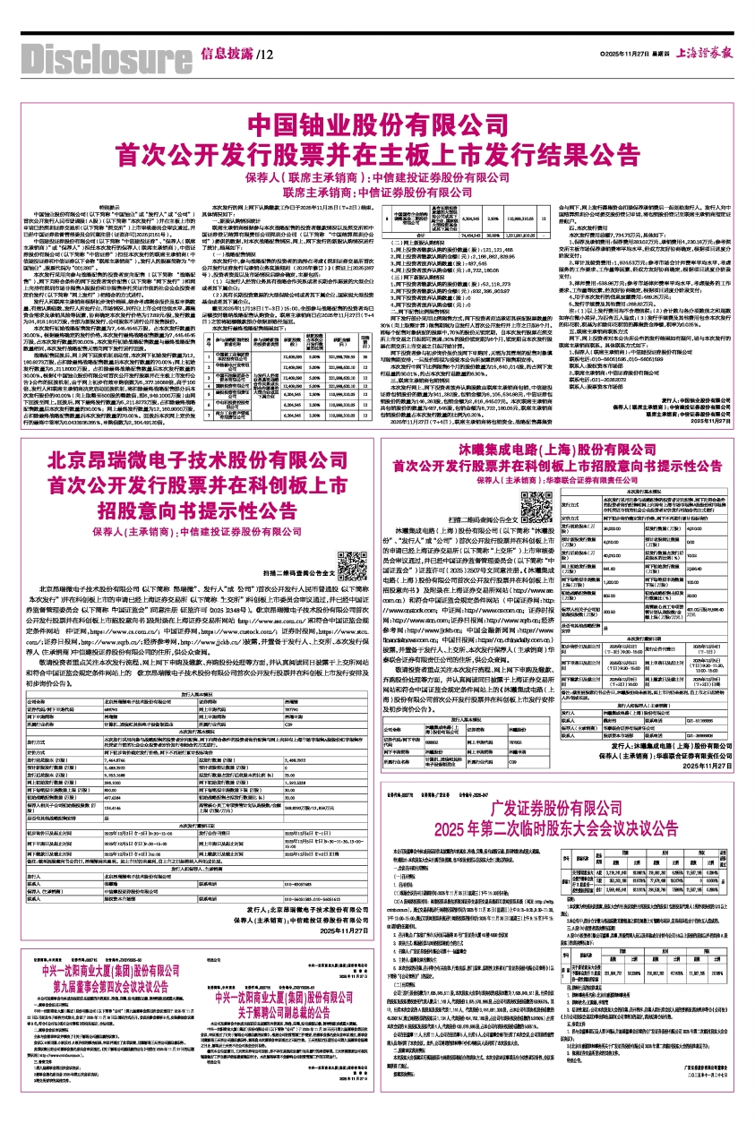 本次发行的网上网下认购缴款工作已于2025年11月25日(T+2日)结束。具体情况如下: