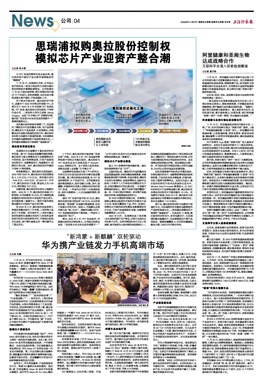 “整机更流畅了”“发热控制改善了”“生态更成熟了”……发布会后,上海证券报记者前往深圳华为门店实探消费者对华为新产品的看法,大部分消费者给出了正面反馈。不仅如此,因全球存储芯片价格上涨,最近发布的手机普遍较前代产品出现涨价,但华为Mate 80系列起售价定为4699元,较上一代下调800元,大部分机型售价相比上一代产品下调约500元。华为新机加“量”不加价,让市场对华为携手产业链加速扩大高端市场份额充满期待。