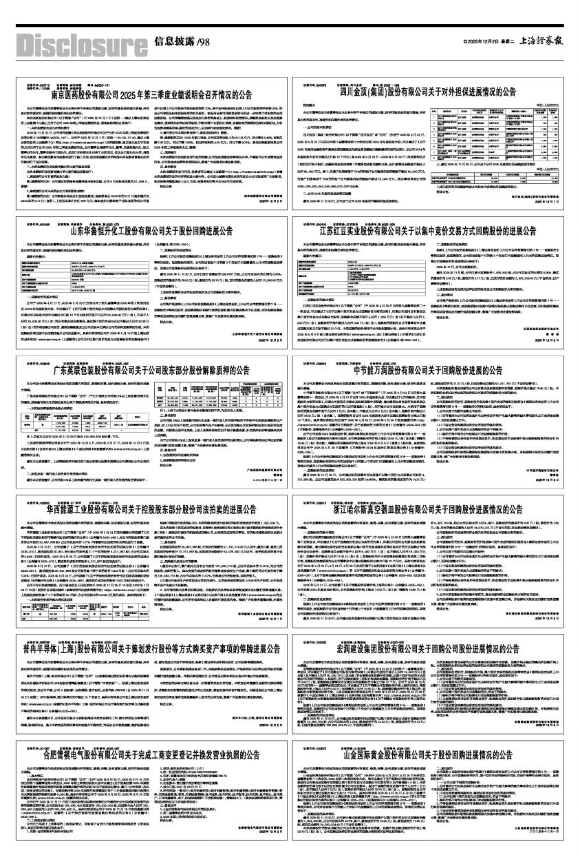 截至2025年11月底,公司已累计回购股份1,090,500股,占公司总股本的比例为0.05%,购买的最高价为2.56元/股、最低价为2.17元/股,已支付的总金额为2,423,205.00元(不含佣金、过户费等交易费用)。