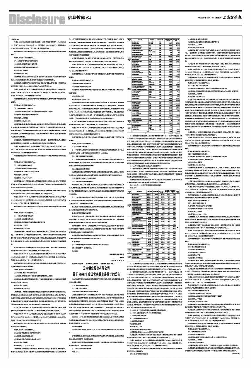 注1:具体内容分别详见公司于2024年12月10日披露的《云南铜业股份有限公司关于2025年日常关联交易预计的公告》(公告编号:2024-069)和2025年3月26日披露的《云南铜业股份有限公司关于新增日常关联交易的公告》(公告编号:2025-023)。