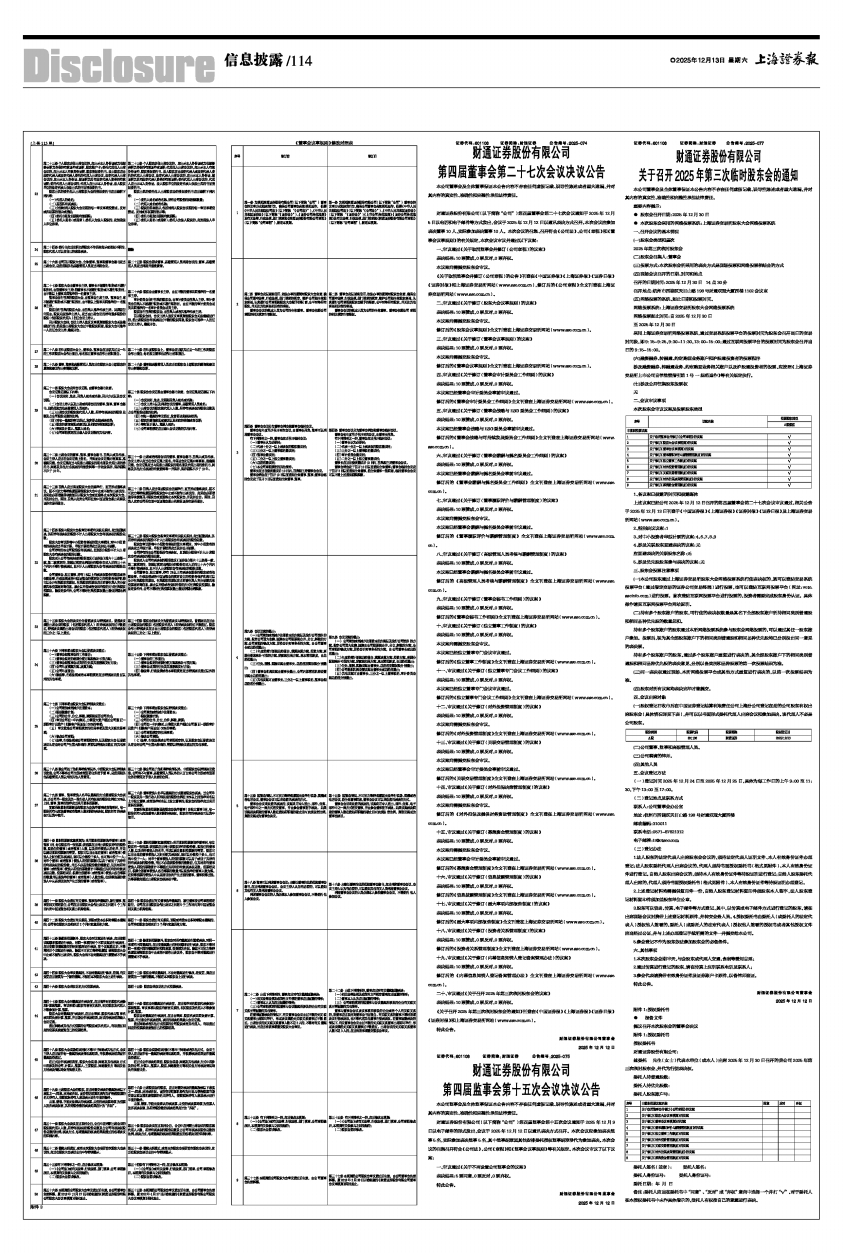 财通证券股份有限公司(以下简称“公司”)第四届董事会第二十七次会议通知于2025年12月5日以电话和电子邮件等方式发出,会议于2025年12月12日以通讯表决方式召开。本次会议应参加表决董事10人,实际参加表决董事10人。本次会议的召集、召开符合《公司法》、公司《章程》和《董事会议事规则》的有关规定,本次会议审议并通过以下议案: