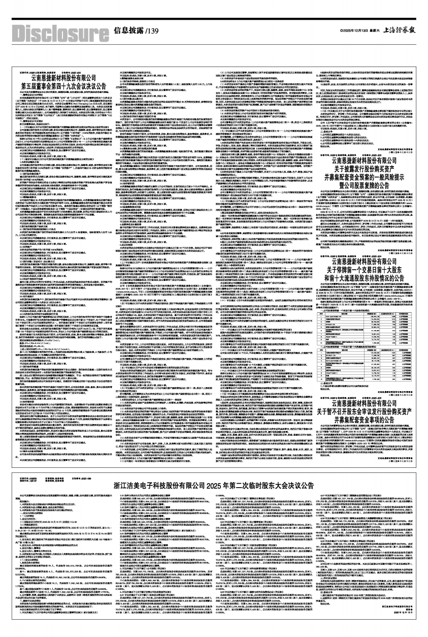 公司《云南恩捷新材料股份有限公司发行股份购买资产并募集配套资金预案》(公告编号:2025-201号)同日刊登于《中国证券报》《上海证券报》《证券时报》《证券日报》及巨潮资讯网(www.cninfo.com.cn,下同);《云南恩捷新材料股份有限公司发行股份购买资产并募集配套资金预案摘要》(公告编号:2025-202号)同日刊登于《中国证券报》《上海证券报》《证券时报》《证券日报》及巨潮资讯网。